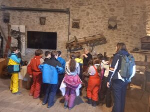 Ce matin nous sommes allés à Aussois visiter la maison du patrimoine ” L’Arche d’Oé”. C’est une maison entretenue par des bénévoles sur l’histoire de la montagne et en particulier de ceux qui y vivaient. On a pu voir comment ils vivaient quand il n’y avait ni eau, ni électricité et beaucoup plus de neige qu’aujourd’hui.